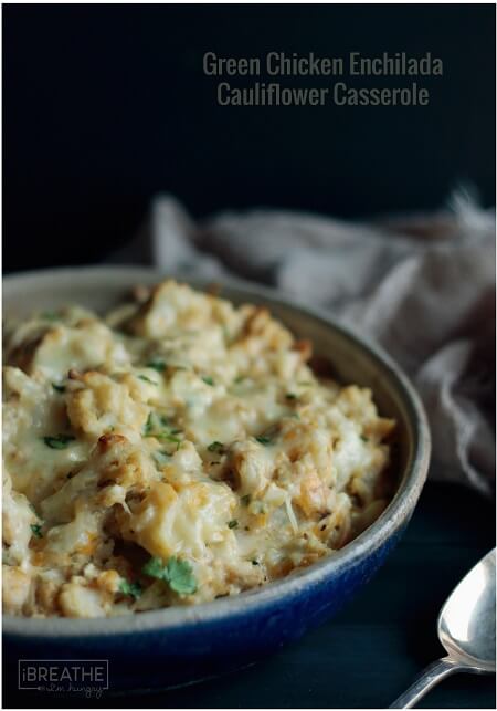 Green Chicken Enchilada Cauliflower Casserole – IBIH–A cheesy green chicken enchilada low carb cauliflower casserole that is super easy to throw together and gluten free! Keto & Atkins friendly! I Breathe I'm Hungry