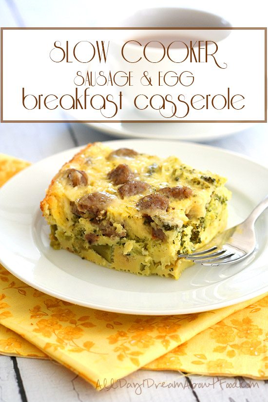 Slow Cooker Sausage & Egg Breakfast Casserole–This low carb slow cooker breakfast casserole will make your mornings all the brighter. Packed with broccoli and breakfast sausage for a healthy start to your day. This post is sponsored by Jones Dairy Farm. I love breakfast. Love, love, love breakfast. As in big pink puffy heart love. I love waking up with that empty gurgle in my tummy (assuming I didn't eat too much the evening prior) and filling up on healthy, low carb foods. All Day I Dream About Food