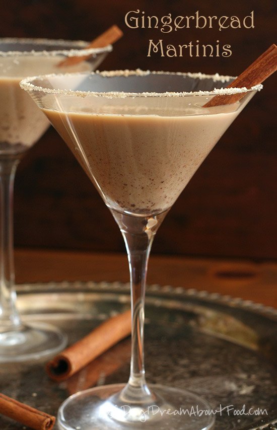 Sugar-Free Gingerbread Martinis–Get into the holiday spirit with a delicious low carb gingerbread cocktail. Made with new stevia simple syrup for a sugar-free indulgence! I am well into the Christmas recipe creation and Thanksgiving isn't for more than a week yet. You might suspect I am one of those wildly organized people who gets way ahead of the game and is always on top of everything. You know, one of those people who remembers to send birthday cards to everyone she knows well in advance and has her children all glammed up in Christmas finery in October for the yearly holiday card photo. All Day I Dream About Food