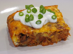 Cheesy Chorizo Breakfast Bake–This Cheesy Chorizo Breakfast Bake is one of my favorite weekend breakfasts. I love to top it with sour cream and green onions. Peace Love and Low Carb