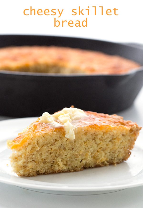 Low Carb Cheesy Skillet Bread–Easy low carb skillet bread with a wonderful crust of cheddar cheese. This keto bread recipe is perfect with soups and stews, and makes the BEST low carb Thanksgiving stuffing! Check out my new how-to video. I approach skillet recipes that go in the oven with some trepidation because it's almost inevitable that someone will try to pick up the hot skillet with their bare hands. I remember in vivid detail my husband wrapping his hand around the handle of skillet I had removed from the oven only a few minutes before. All Day I Dream About Food