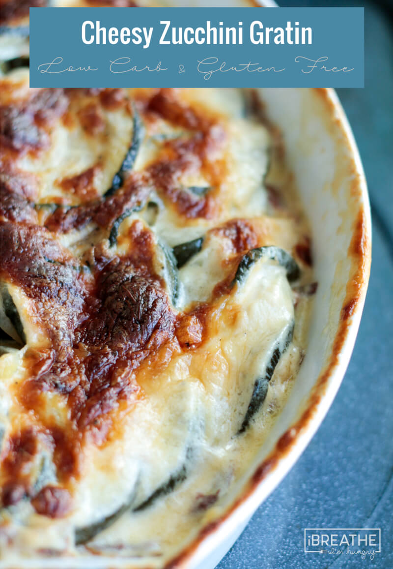 Easy Cheesy Zucchini Gratin – Low Carb & Keto | I Breathe I'm Hungry–This Easy Cheesy Zucchini Gratin has become a staple in our house! It's cheesy, creamy, & super easy to throw together. The perfect low carb side dish! I Breathe I'm Hungry