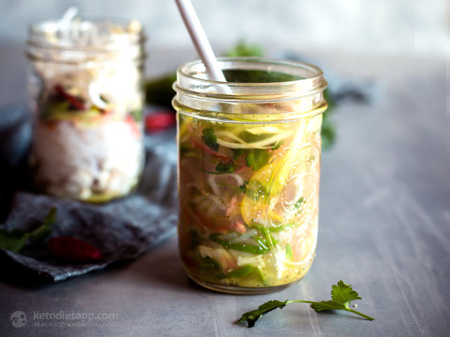 Keto Chicken Noodle Soup Jars | The KetoDiet Blog–These keto & paleo soup jars are quick to put together the night before, keep well in the fridge, travel easily and they taste amazing! KetoDiet