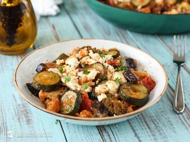 Low-Carb Vegetarian Greek Briam | The KetoDiet Blog–Contrary to common belief, a keto diet doesn't need to be “zero-carb” and you can in fact include a large variety of non-starchy vegetables. This Greek Briam is one of the best vegetable dishes you can have on a low-carb diet. KetoDietApp