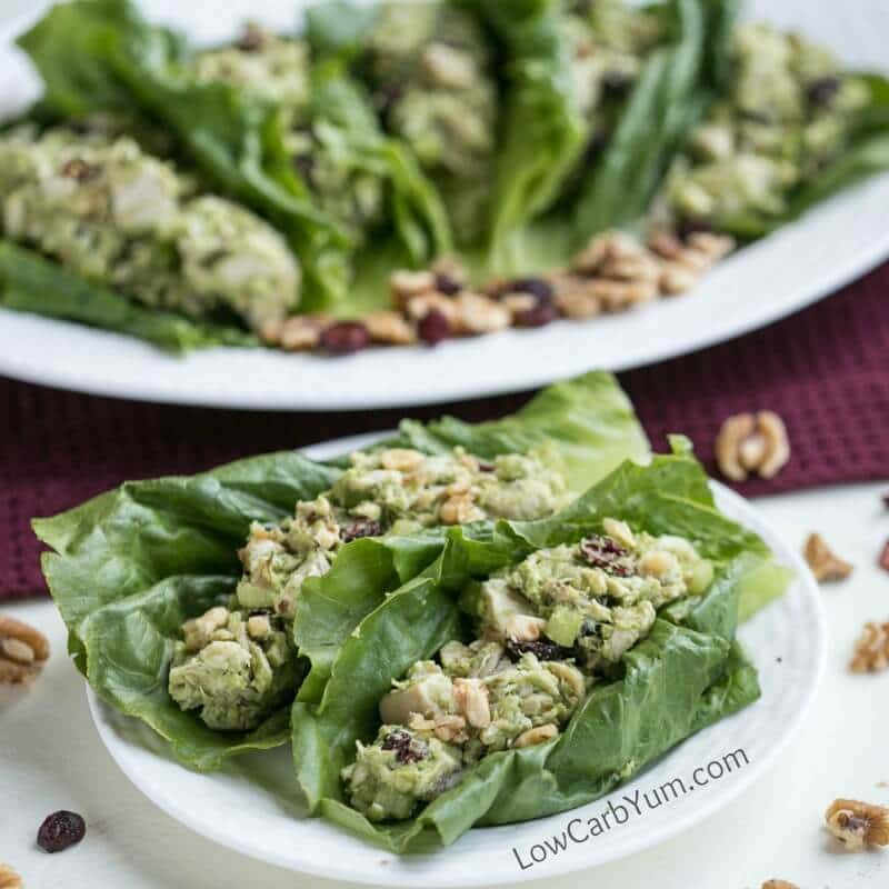 Cranberry Walnut Chicken Salad with No Mayonnaise | Low Carb Yum–A low carb cranberry walnut chicken salad made with California walnuts. You'll love this paleo friendly chicken salad without mayonnaise. Low Carb Yum