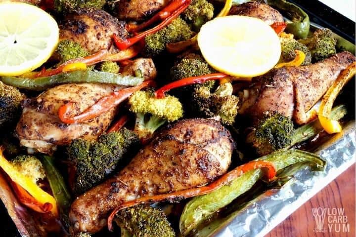 Super Easy Sheet Pan Chicken with Vegetables–For a great weeknight dinner, give this super easy sheet pan chicken with vegetables a try. It's even easier if you use pre-cut veggies! Low Carb Yum