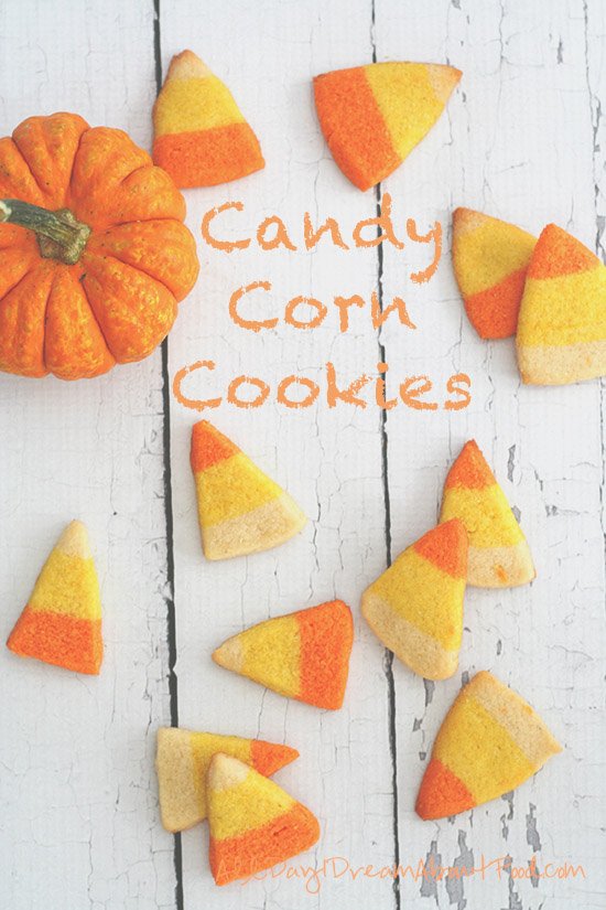 Candy Corn Cookies – Low Carb and Gluten-Free–Sugar-free sugar cookies shaped like your favorite Halloween treat! These low carb candy corn cookies appeal to the kid in all of us. I honestly think that candy corn is one of the more repulsive confections ever invented. I know many people love it but I shudder at the very thought. It is so unbelievably sweet and tastes of nothing more than sugar and corn syrup boiled together. Maybe it's because I am Canadian and I didn't grow up with them, but I just don't see the attraction of the little candies shaped like corn kernels. All Day I Dream About Food