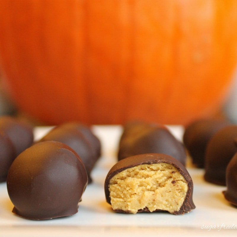 Low Carb Candy – Pumpkin Truffles | Low Carb Yum–Pumpkin truffles. This low carb candy is a sugar free pumpkin ganache covered in a dark chocolate coating. Perfect for Halloween or Thanksgiving. Low Carb Yum